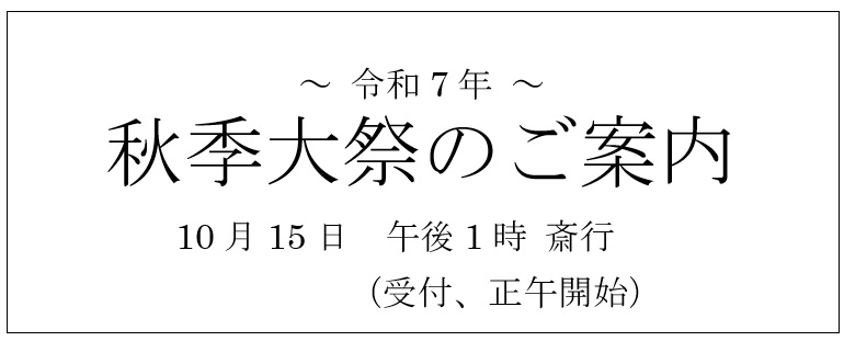 令和7年秋季大祭のご案内