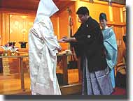 御神前での結婚式は従来、和装にて執り行われてまいりましたが、近年では洋装(ウェディングドレスやスーツなど)での挙式を望む方が増えております。